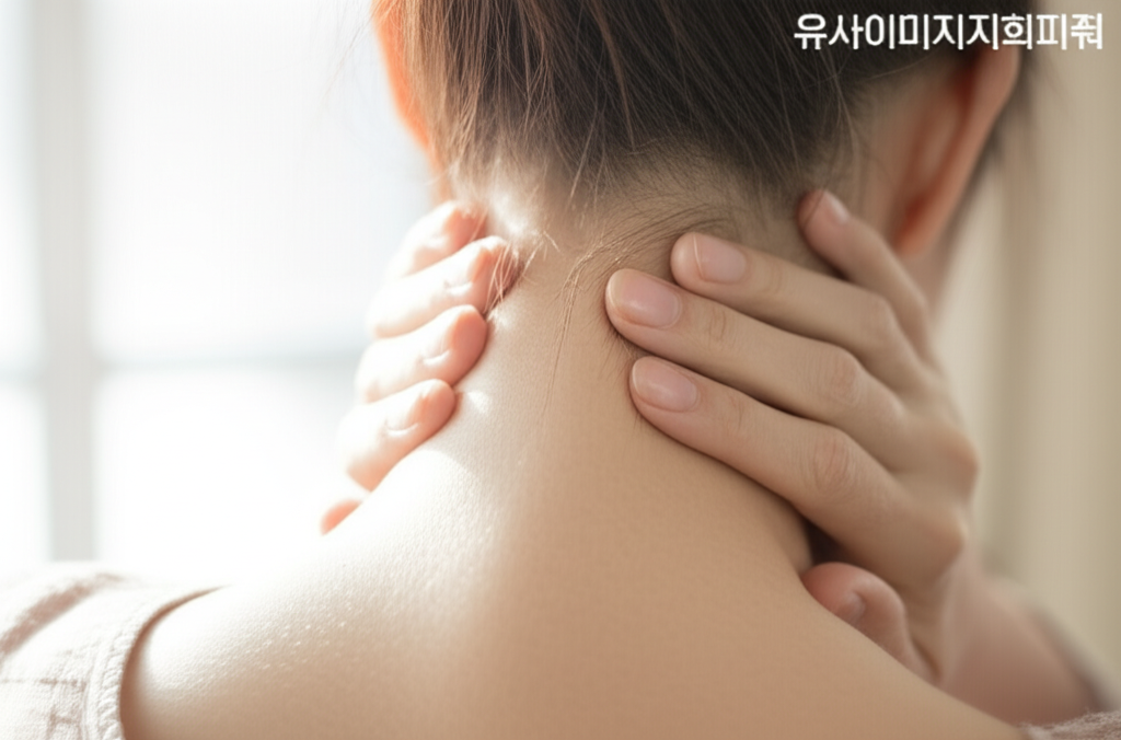 - 목의 뻐근함 및 통증: 목 근육이 뻣뻣하게 느껴지고 통증이 발생합니다. 통증은 둔하거나 날카로운 형태로 나타날 수 있습니다.