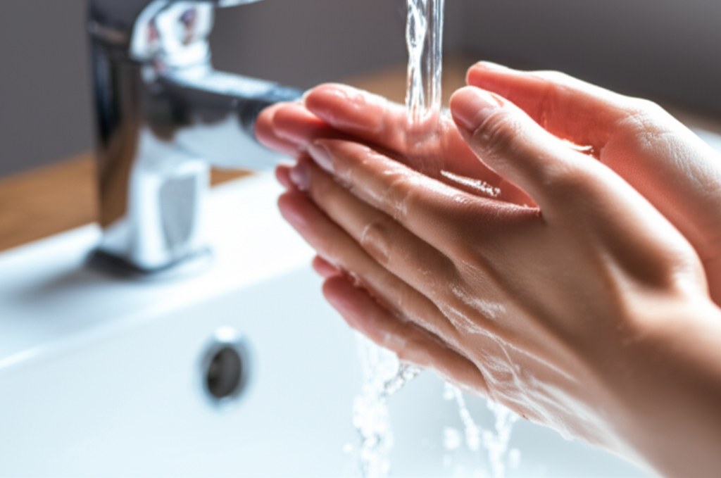 - 손 씻기: 흐르는 물에 비누로 30초 이상 손을 씻습니다.