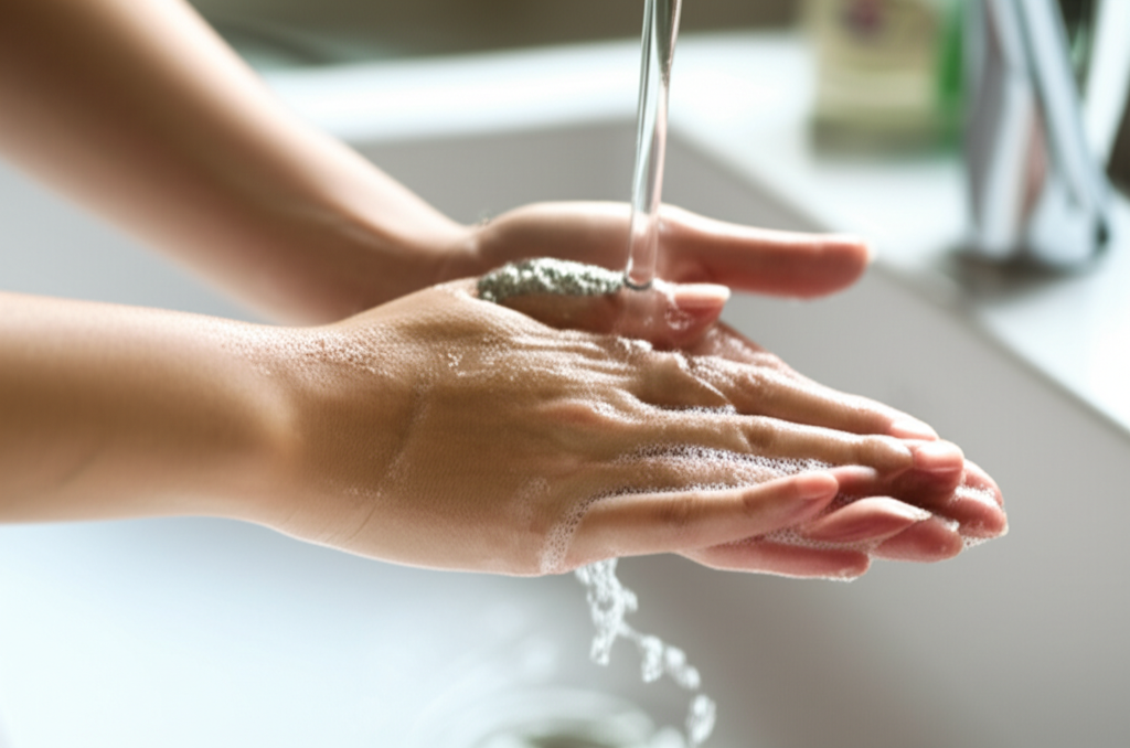 - 손 씻기: 흐르는 물에 비누로 30초 이상 손을 씻어야 합니다.