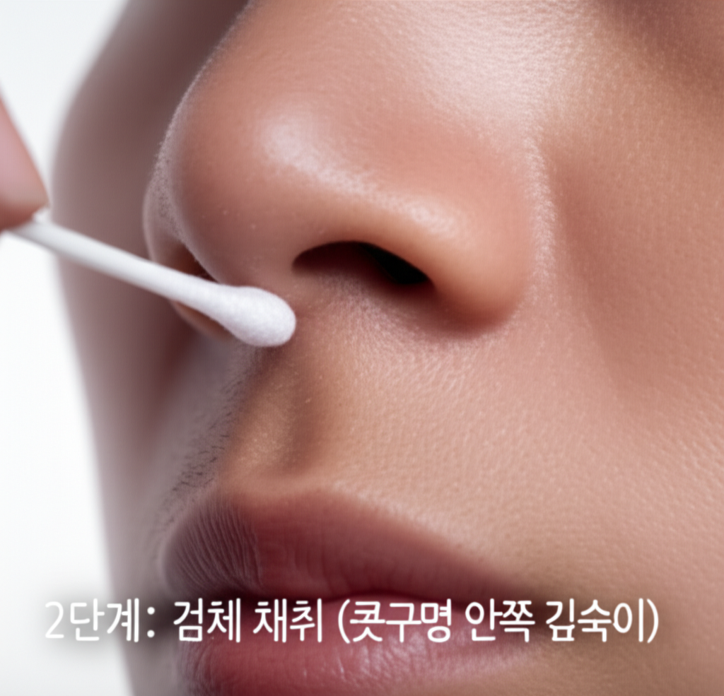 2단계: 검체 채취 (콧구멍 안쪽 깊숙이!)