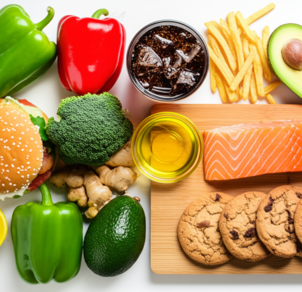 - 가공식품: 인스턴트 식품, 냉동식품, 패스트푸드 등은 트랜스 지방, 첨가물, 과도한 나트륨 함량이 높아 염증을 촉진합니다. 특히 트랜스 지방은 심혈관 질환의 위험을 높이는 주요 원인 중 하나입니다.