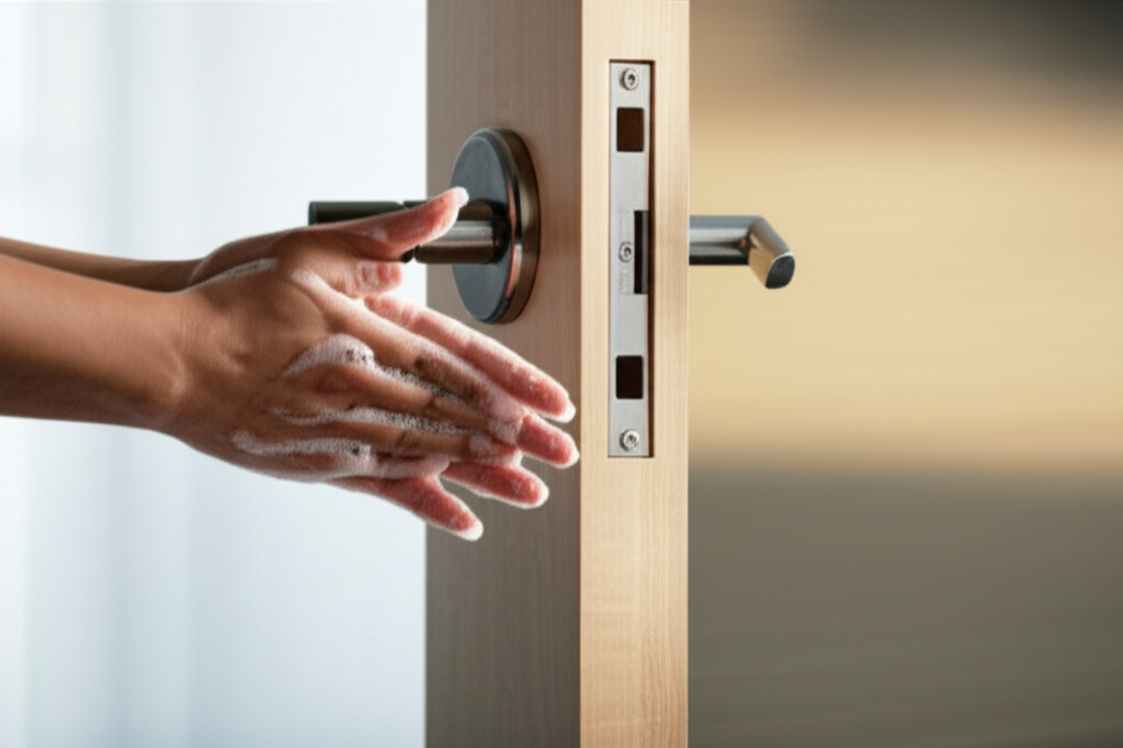 - 손 씻기: 흐르는 물에 비누로 30초 이상 손을 씻습니다.