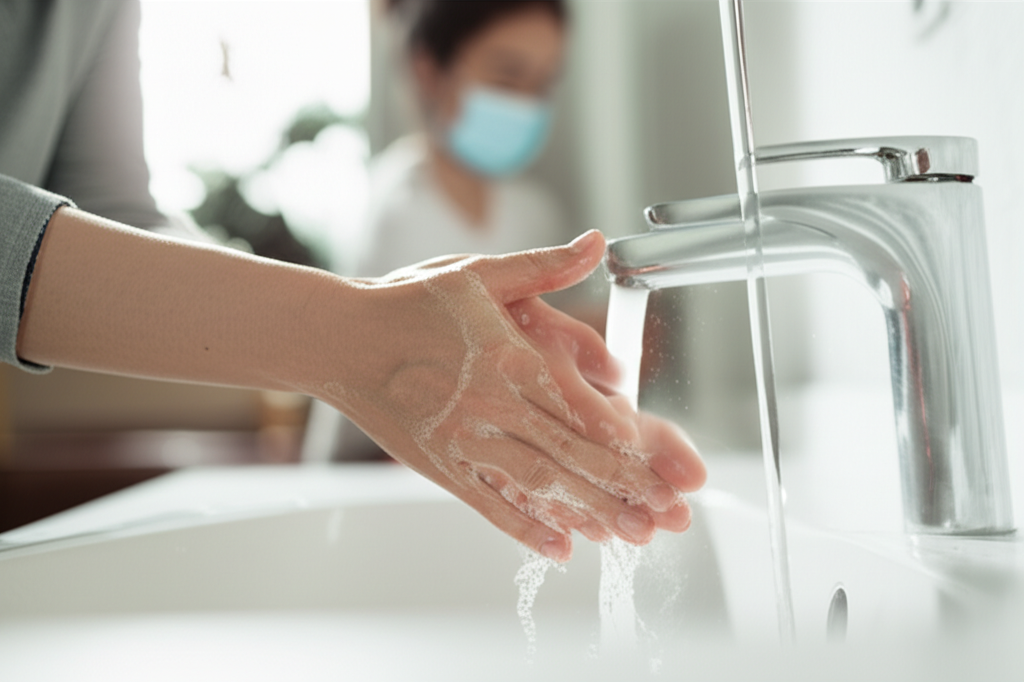 - 손 씻기: 흐르는 물에 비누로 30초 이상 손을 씻고, 손 소독제를 사용하여 손을 청결하게 유지합니다.