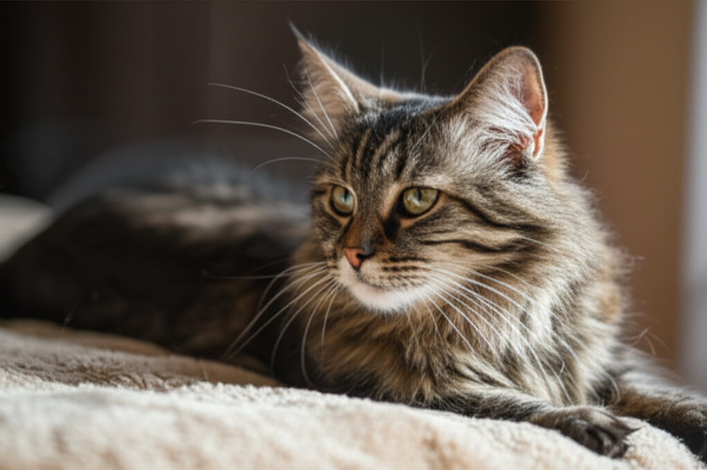 - 그루밍 감소: 특정 부위를 그루밍하기 어려워하거나, 털이 헝클어져 있습니다.